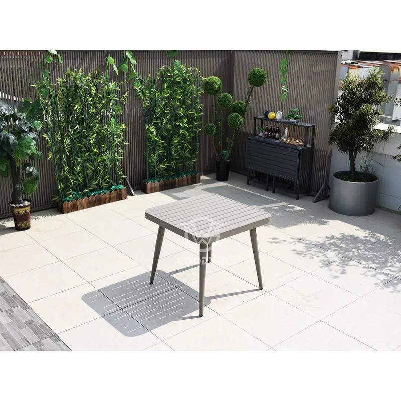 The Aluminum Slatted Top Square Dining Table is the perfect fusion of elegance and casual charm, making it an ideal choice for outdoor dining.