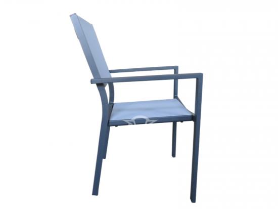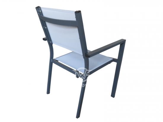 Stacking chair, frame made of aluminum, cover made of breathable textilene fabrics, high level of seat comfortable, it is light and allows the flexible use in different places. Its offer a sturdy aluminum frame, which is then with textilene fabric as well as making it comfortable without the need for cushions.