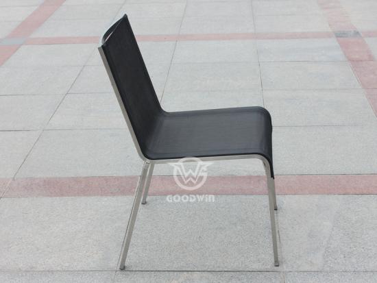 The clean sleek contemporary lines of this high style 304 stainless steel outdoor stacking chair combines very durable materials for outdoor use,commercial grade stainless steel for a sturdy frame and high performance UV and teat resistant textilene,a durable mesh PVC coated fabric that is also mildew resistant and flame retardant for the seat and back rest.
