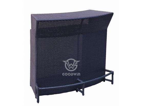 This synthetic rattan bar service set consists of 2 high bar chairs and a curved bar service table, with a place to footrest. Perfect for serving up cocktails on a warm summer's afternoon. The frame oh the bar is made from robust powder-coated aluminum, as are the bar stools. You can customize to your design matching of different shapes.