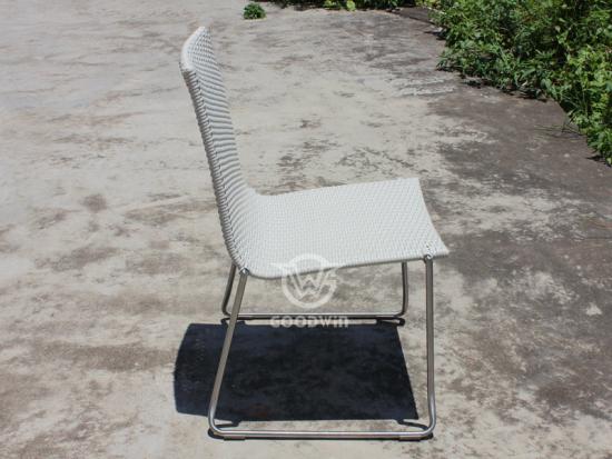 This outdoor synthetic rattan dining side chair establishes the standard for alfresco dining.The chair's stainless steel frame and synthetic rattan seat are ready to withstand the elements for seasons to come.Great for small space,and even better in pairs that is beautiful and incredibly comfortable to relax in.