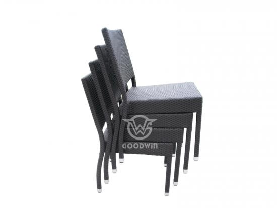 When you want your outdoor patio to have a sleek and modern look while still maintaining a high level of comfort, this synthetic rattan side chair exceeds your expectations. The dining side chair offer a sturdy aluminum frame, which is then woven with synthetic rattan as well as making it comfortable without the need for cushions.