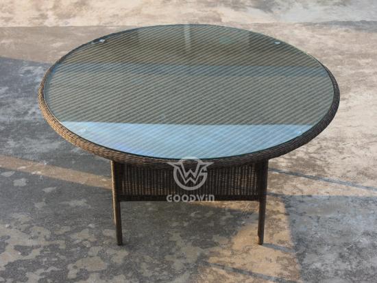 This outdoor rattan curved benches,which fit beautifully around a round table,remove the undignified scuffle for the single comfy bench seat. Four of the sweeping benches fit around this set's table. Made from polyurethane in the style of woven rattan,this dining set is suitable for outdoor use.