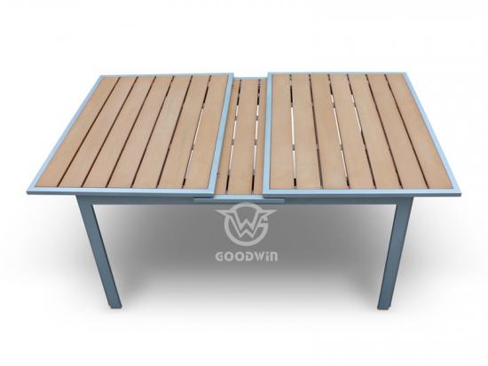 Rectangle Aluminum Frame PE wood Extendable Dining Table