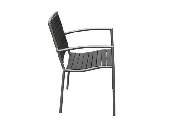 This stainless steel frame PE wood dining armchair is the perfect compliment to your outdoor needs with its sleek and modern design.The frame is stainless steel in a brushed nickel finish, and is contrasted with a beautiful slate PE wood.These patio chairs are lightweight and easily movable between functions and spaces,they are also stack-able saving your room and idea for winter storage.