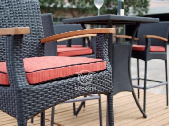 This 4 seat rattan bar set has been expertly crafted with entertaining and comfort in mind. The generously filled cushions allows hours of comfort, whether you're drinks with your family or friends. The teak armrest not only improves the design of this bar stool, but also provides a place to rest for your hands.