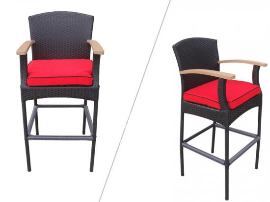 The Bar Stool Set With Teak Armrest we offered are all could be placed directly in sunlight, rain, and all elements.